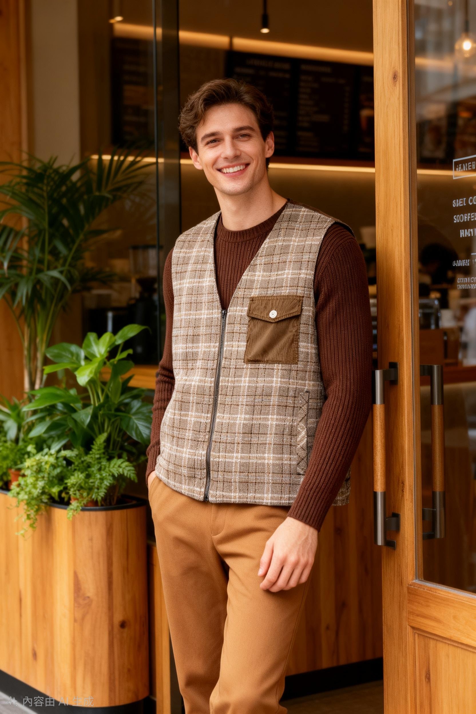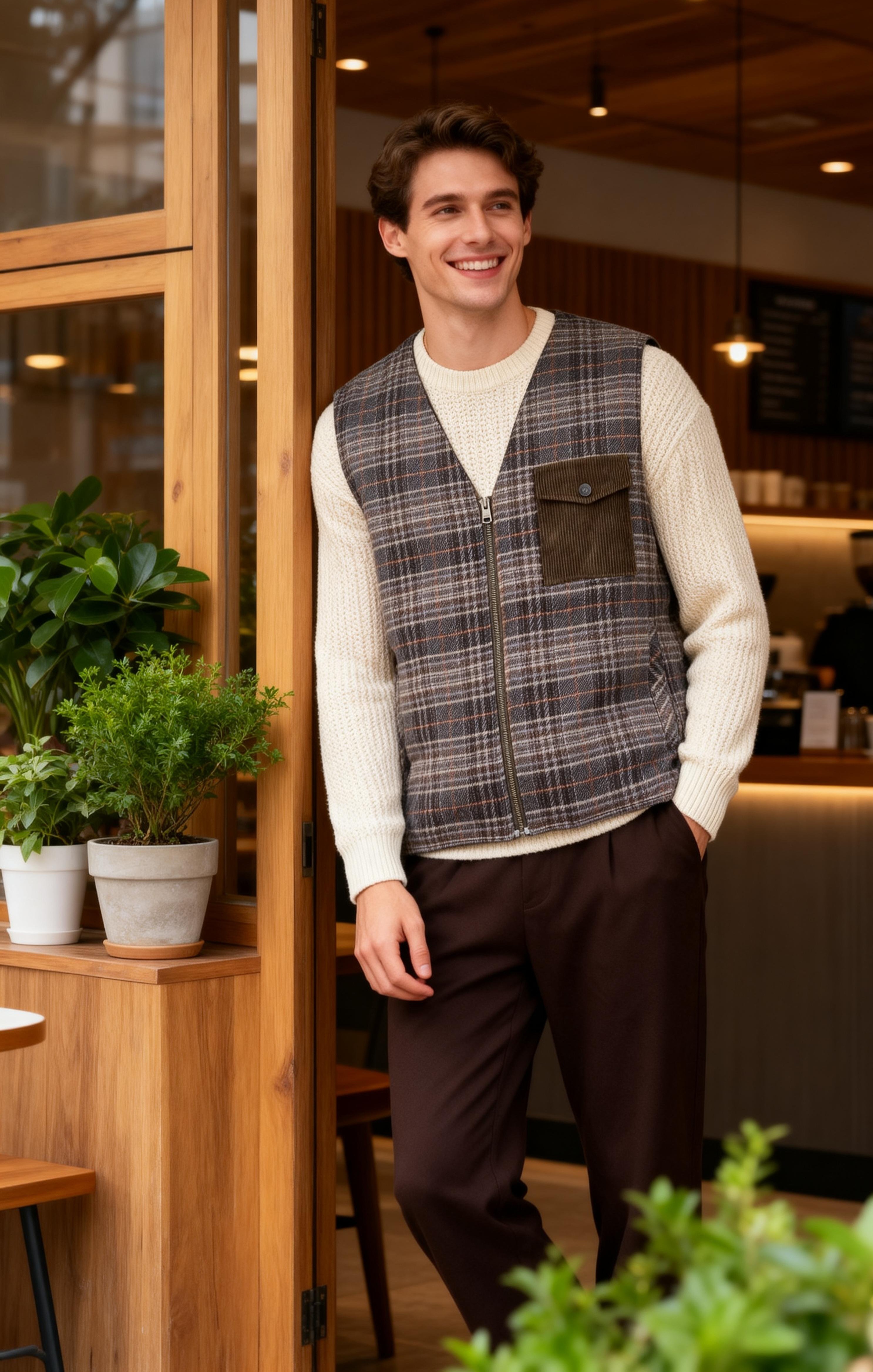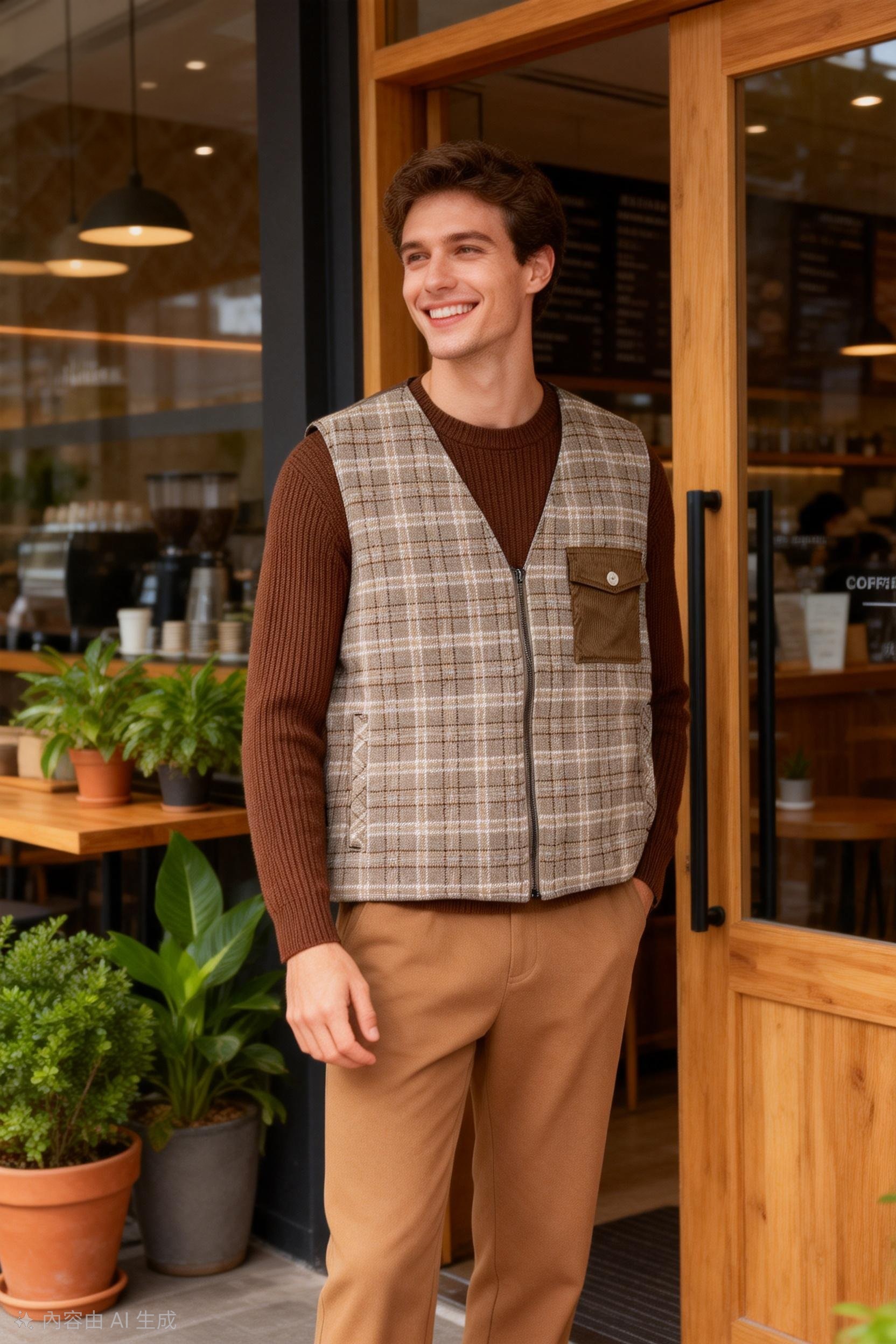 男裝經典格仔馬甲背心