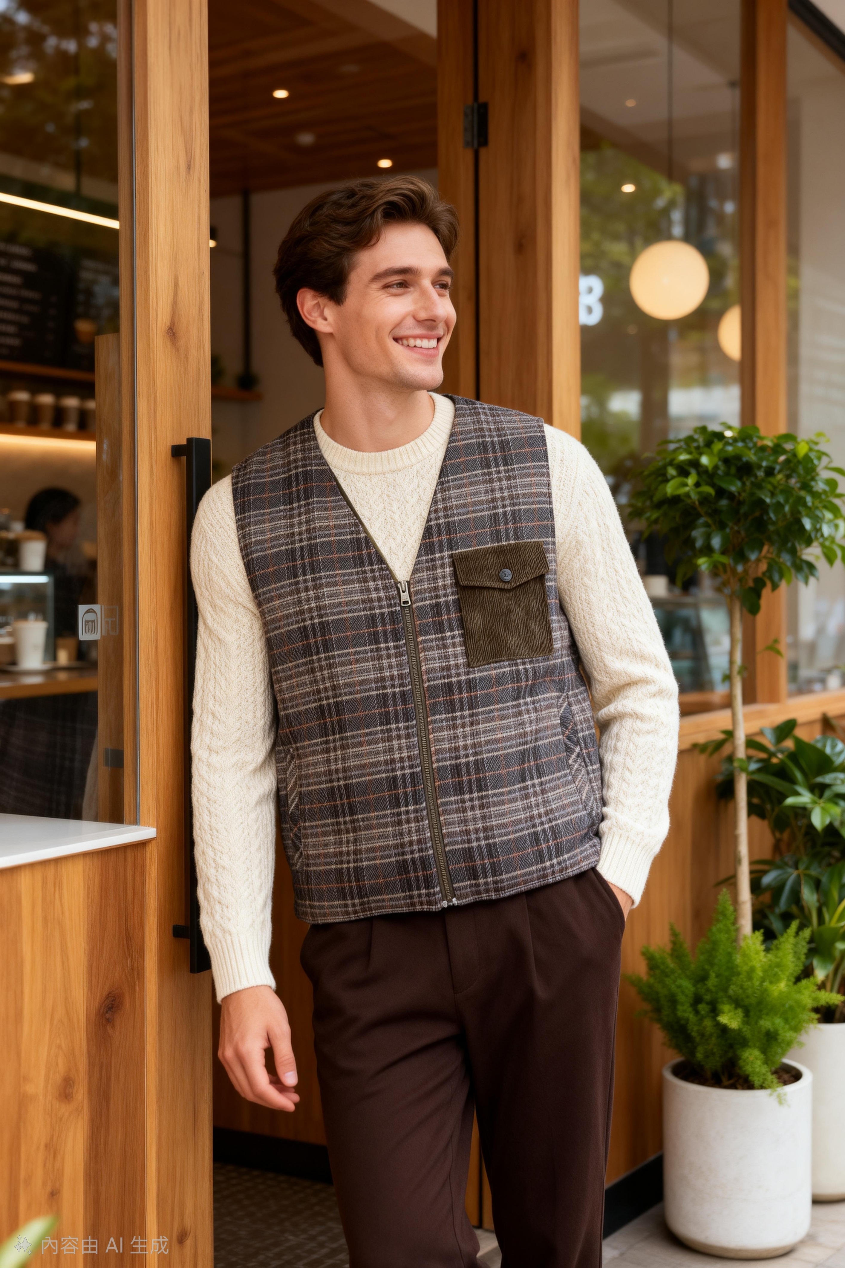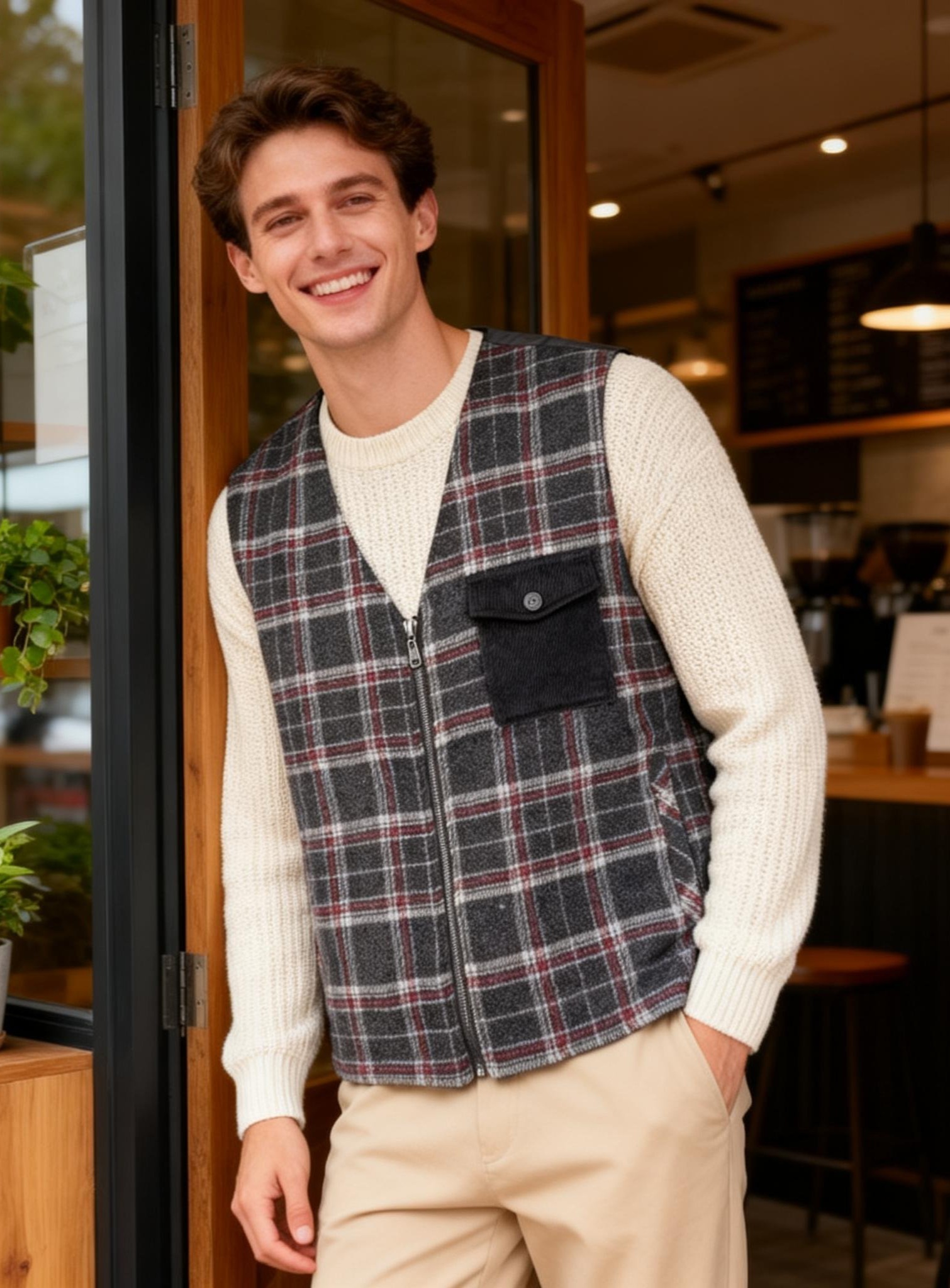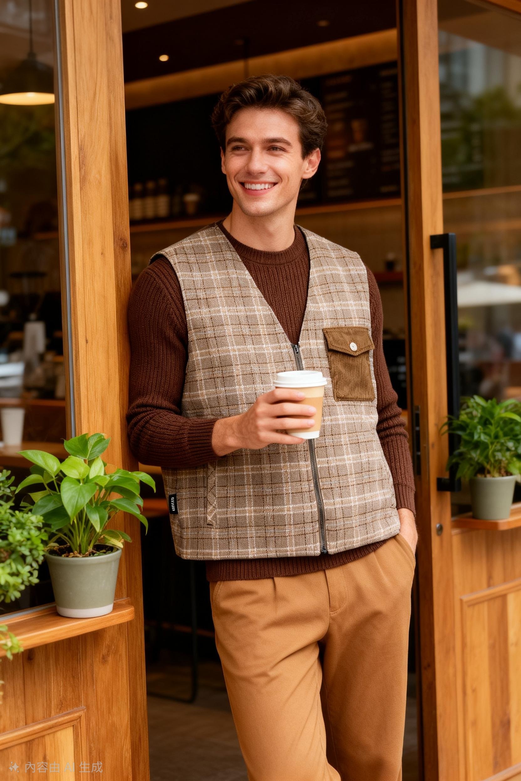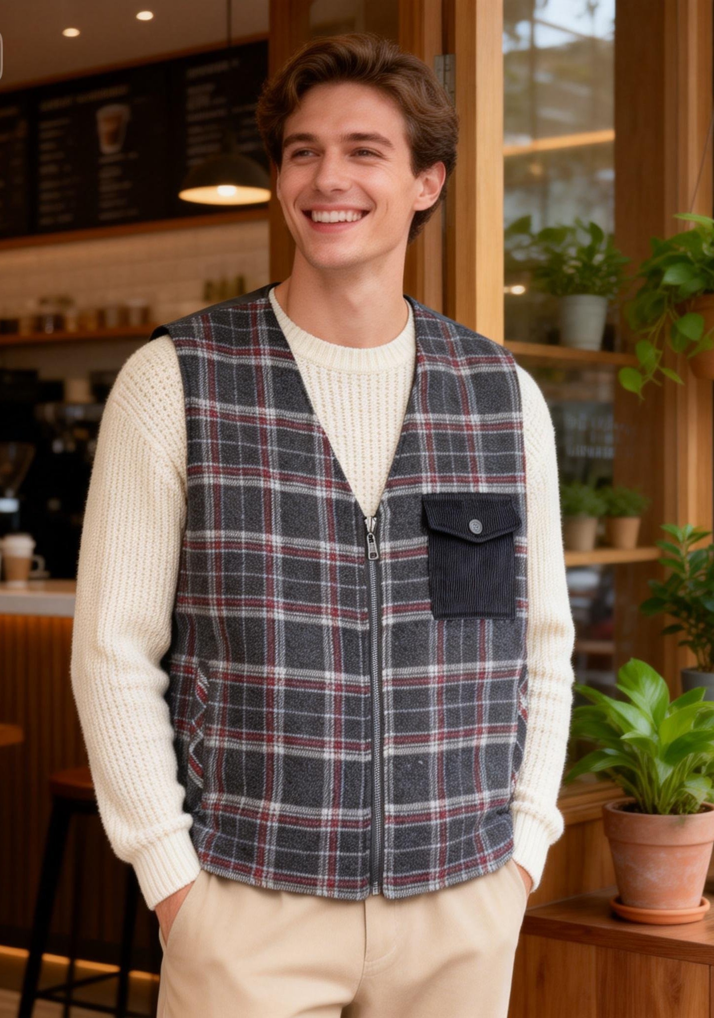 男裝經典格仔馬甲背心