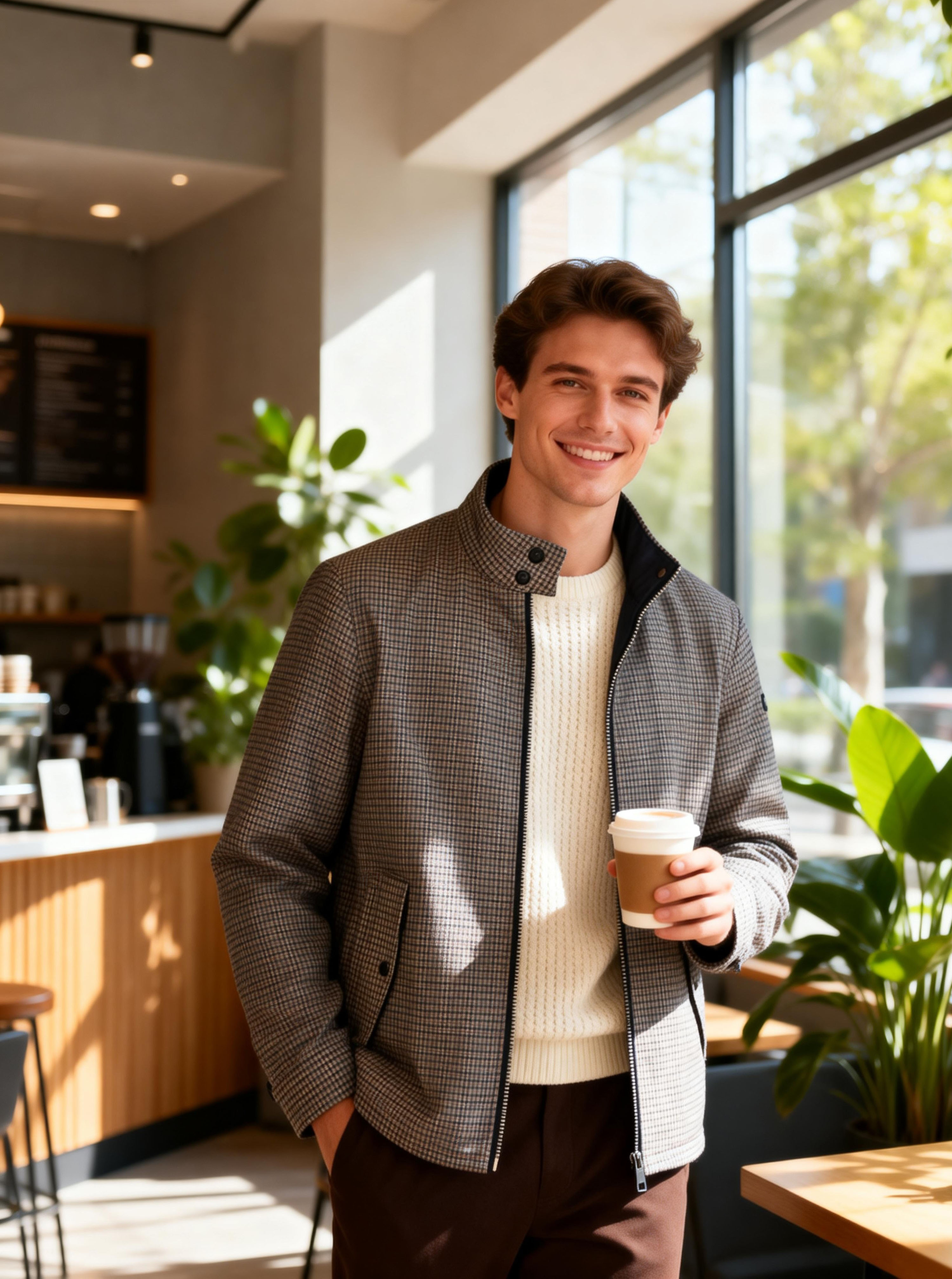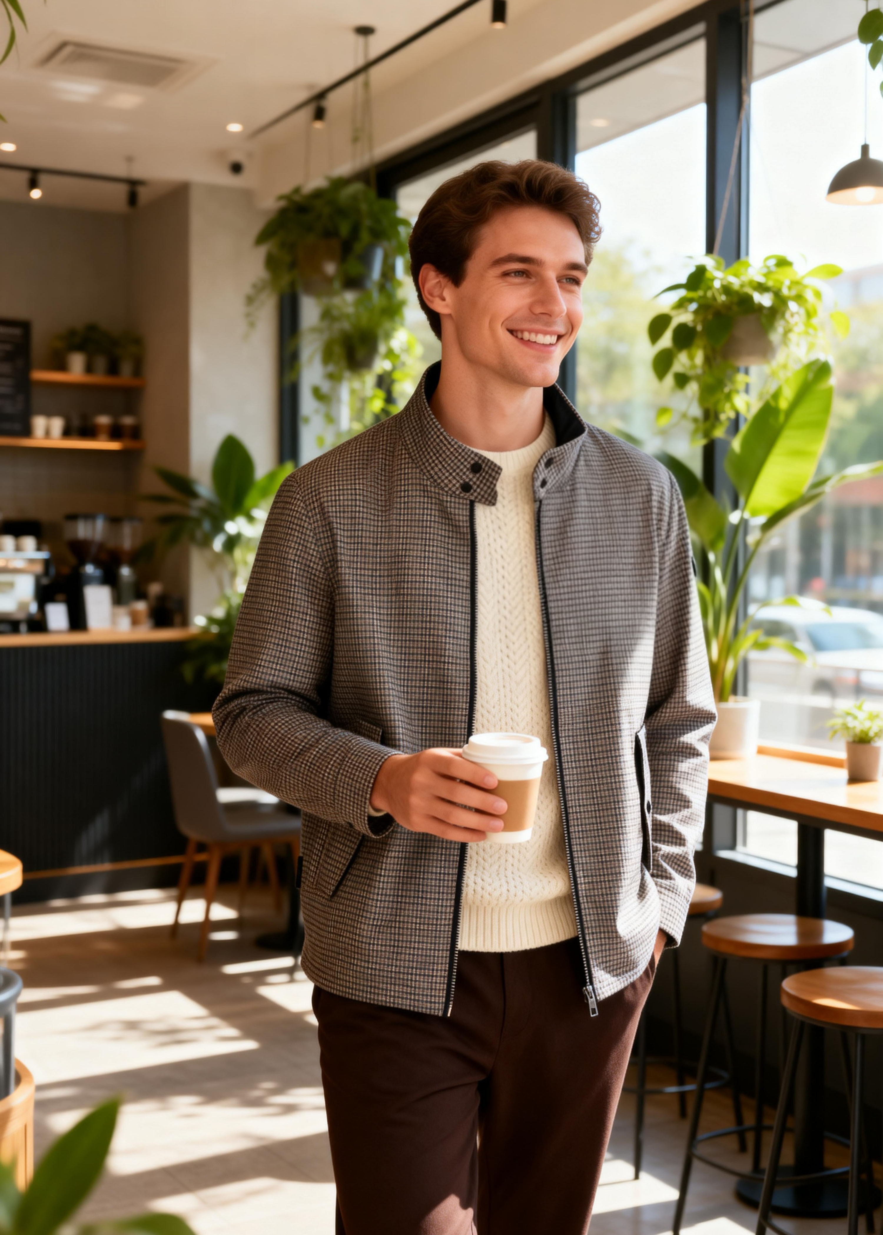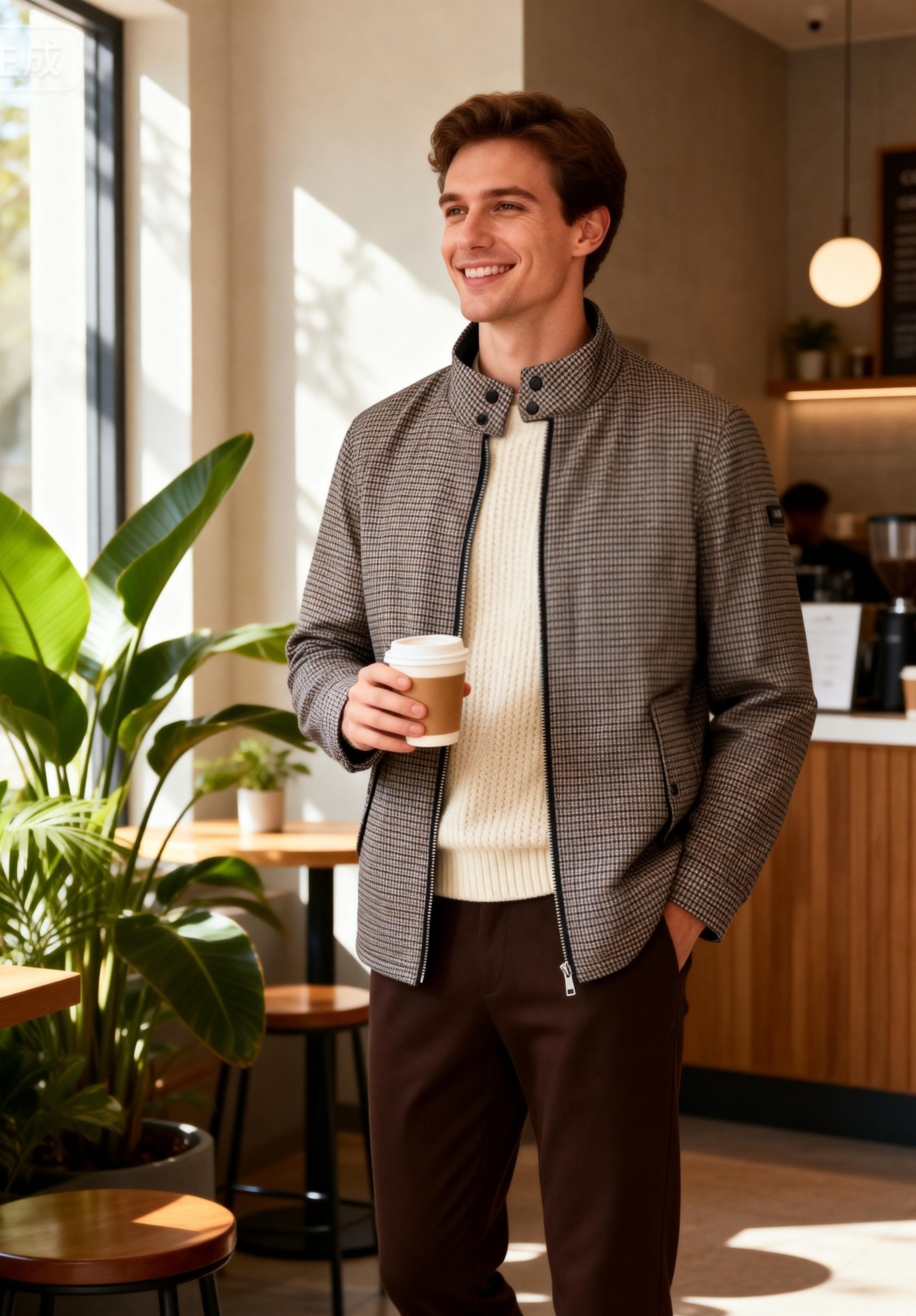 EAST POLE 男裝間棉千鳥格立領長袖夾克外套