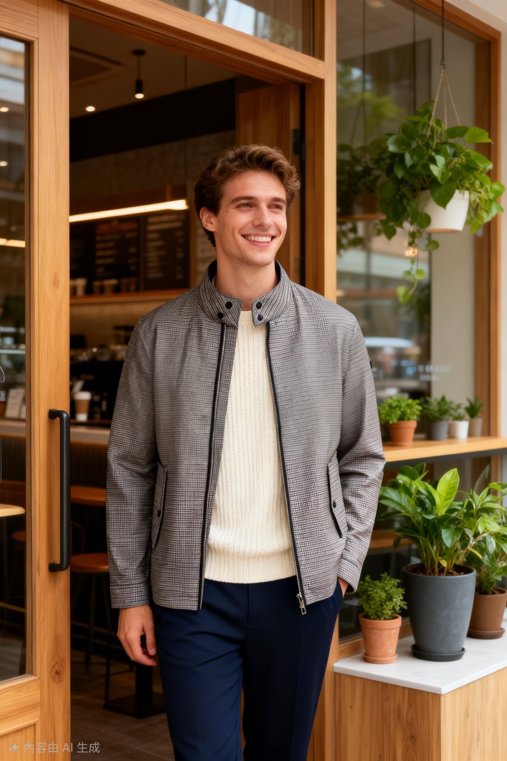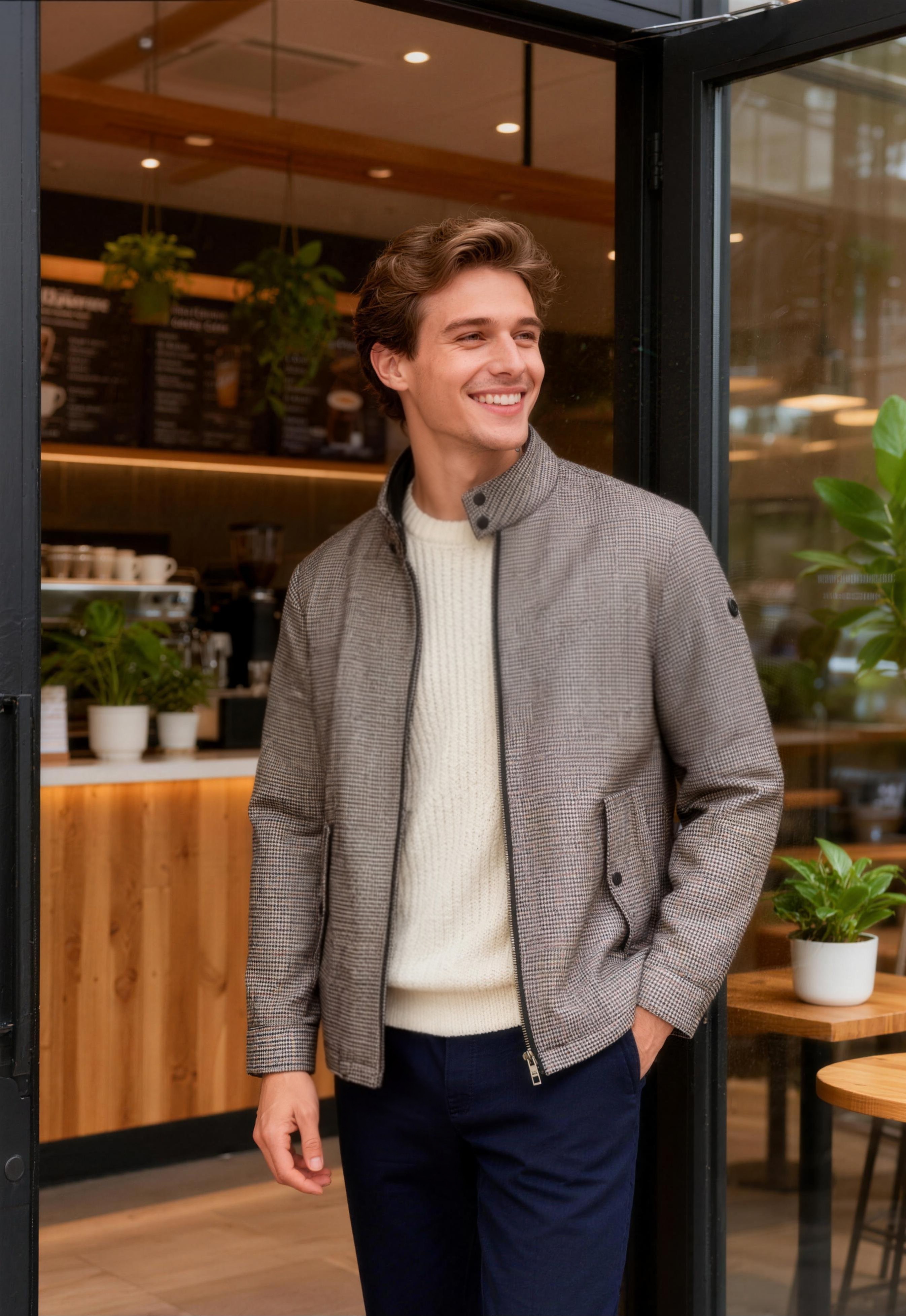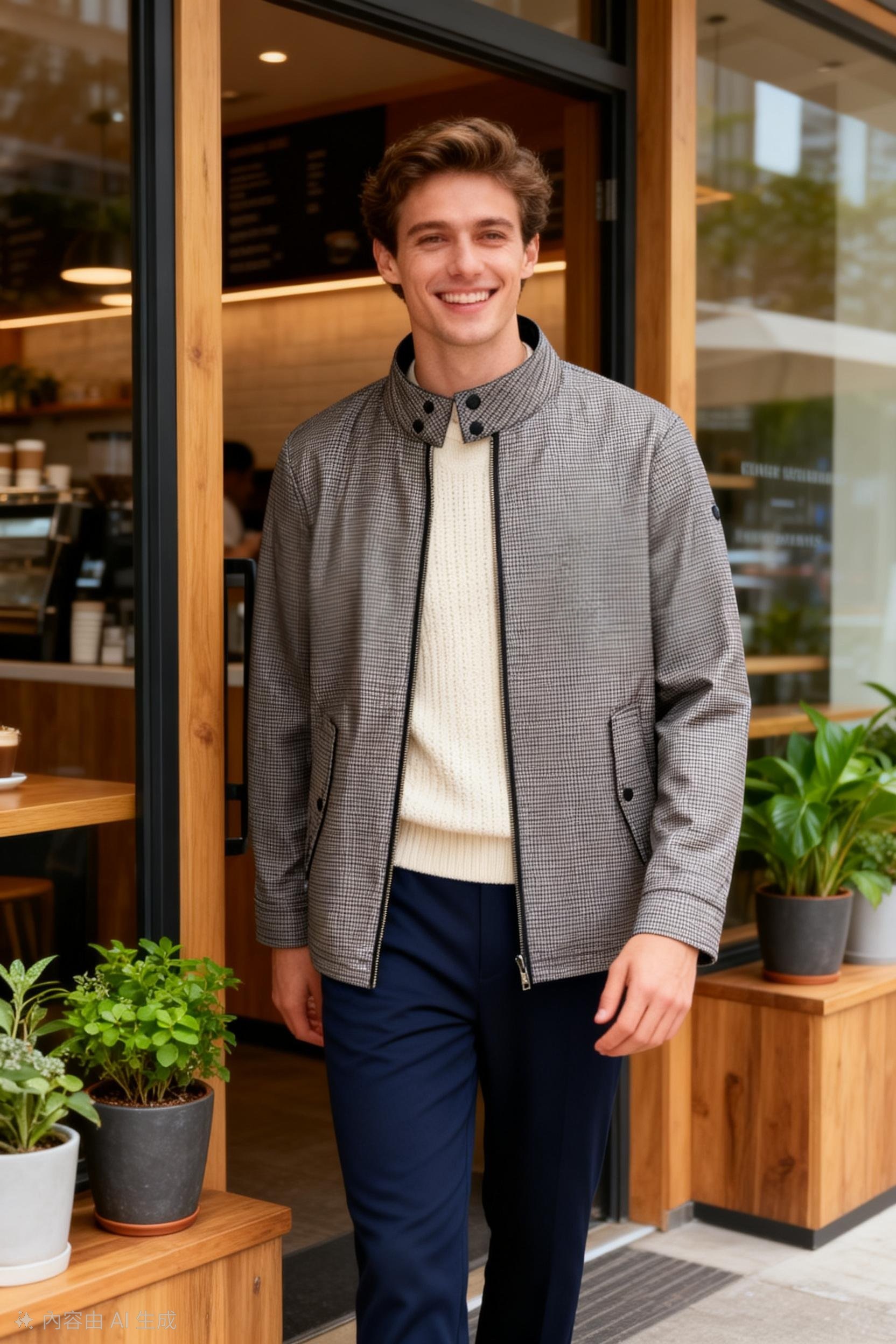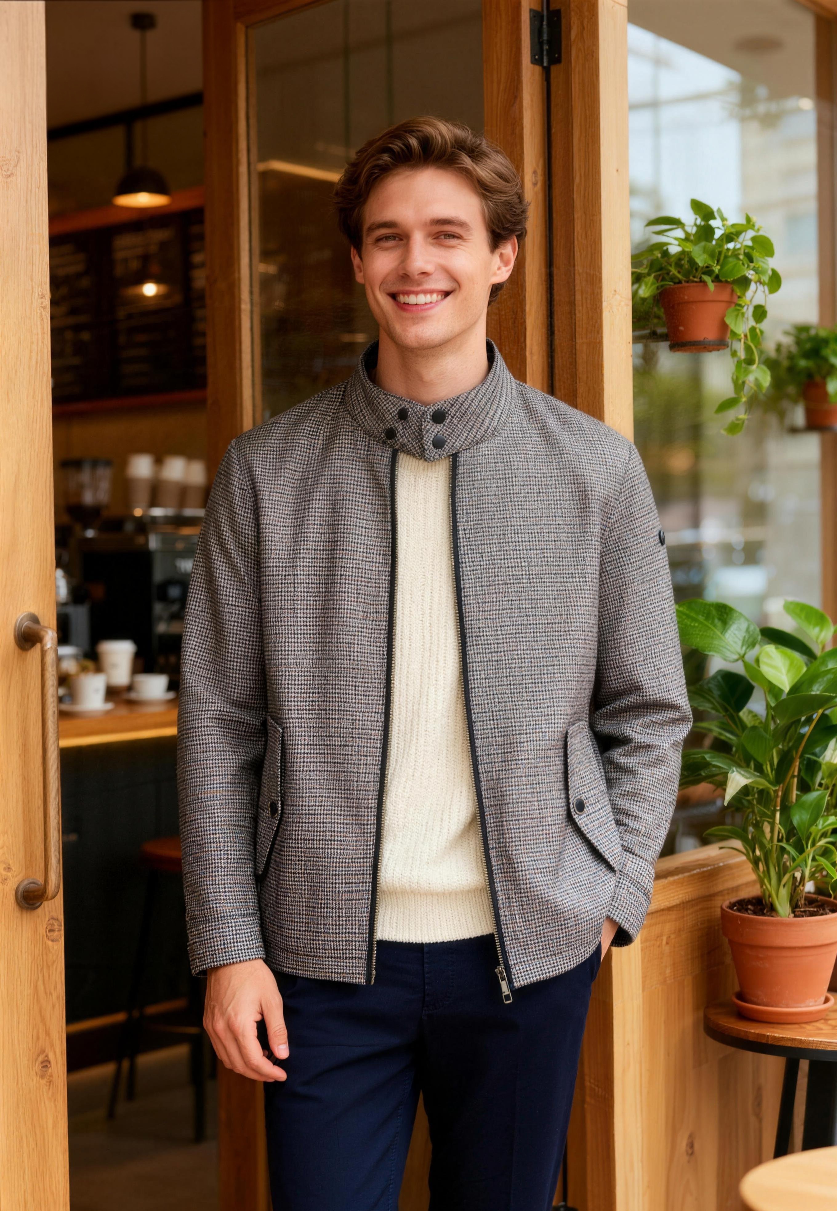 EAST POLE 男裝千鳥格立領長袖夾克外套