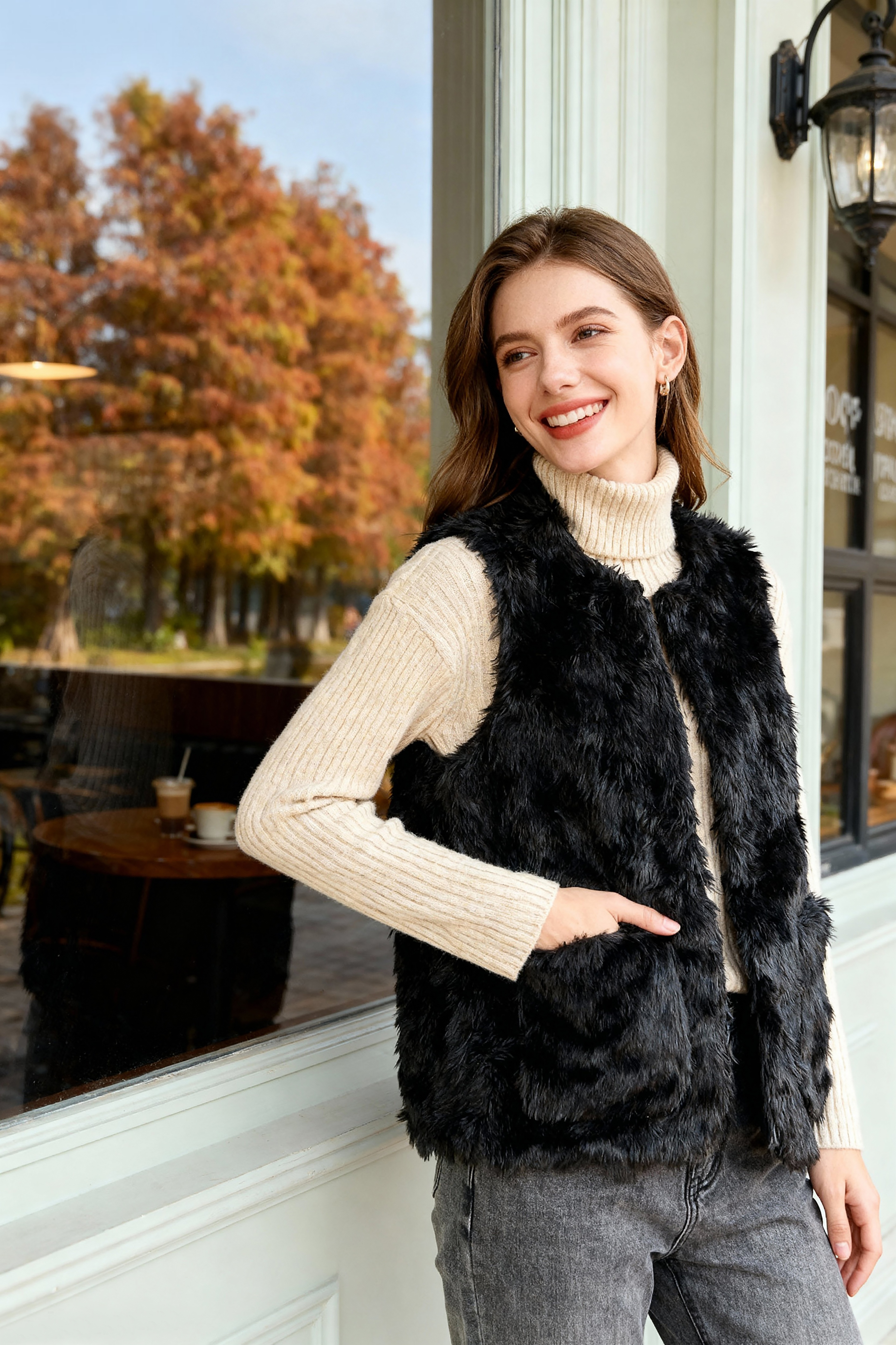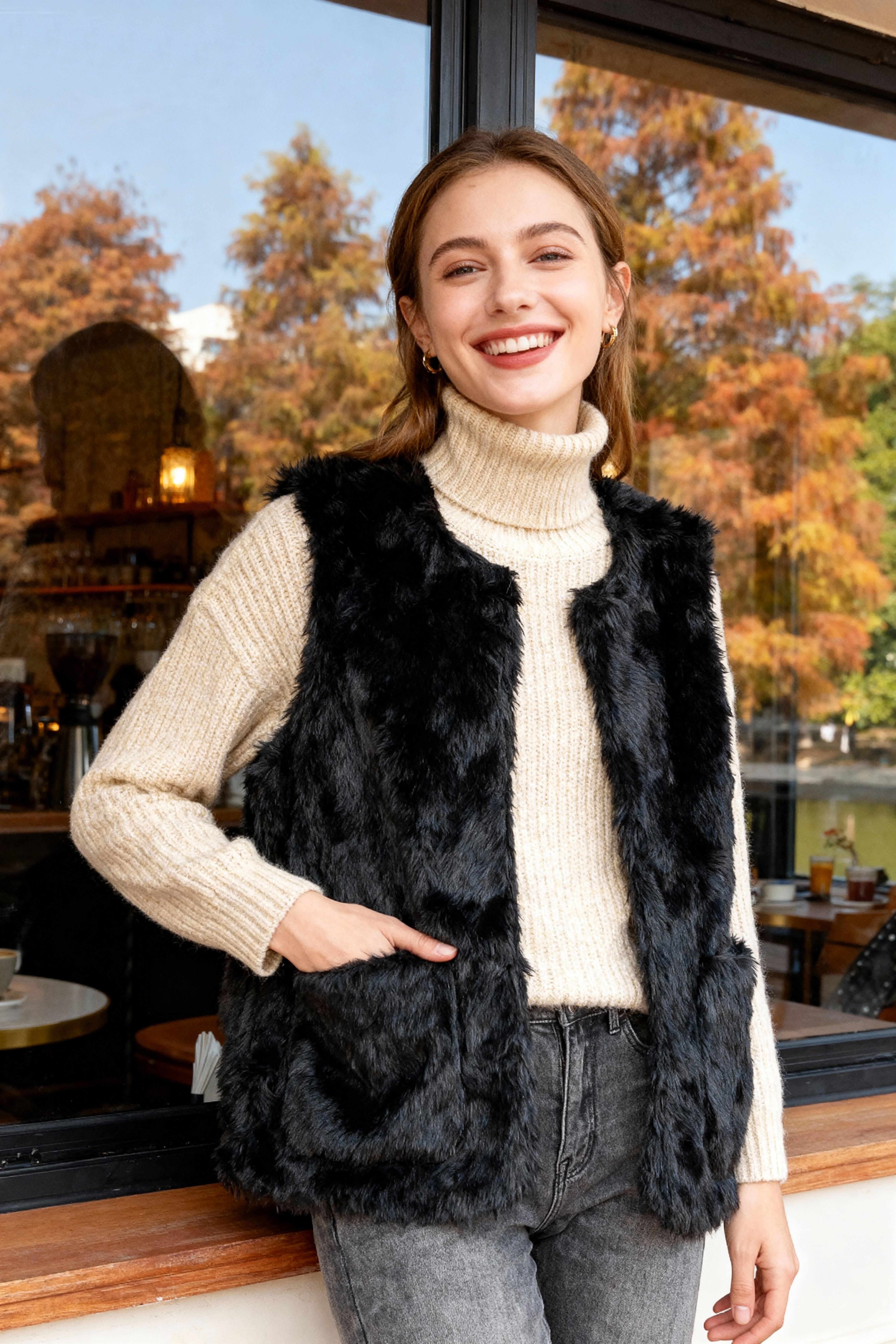 秋冬新款款时尚女皮草马甲显瘦短款修身毛毛背心