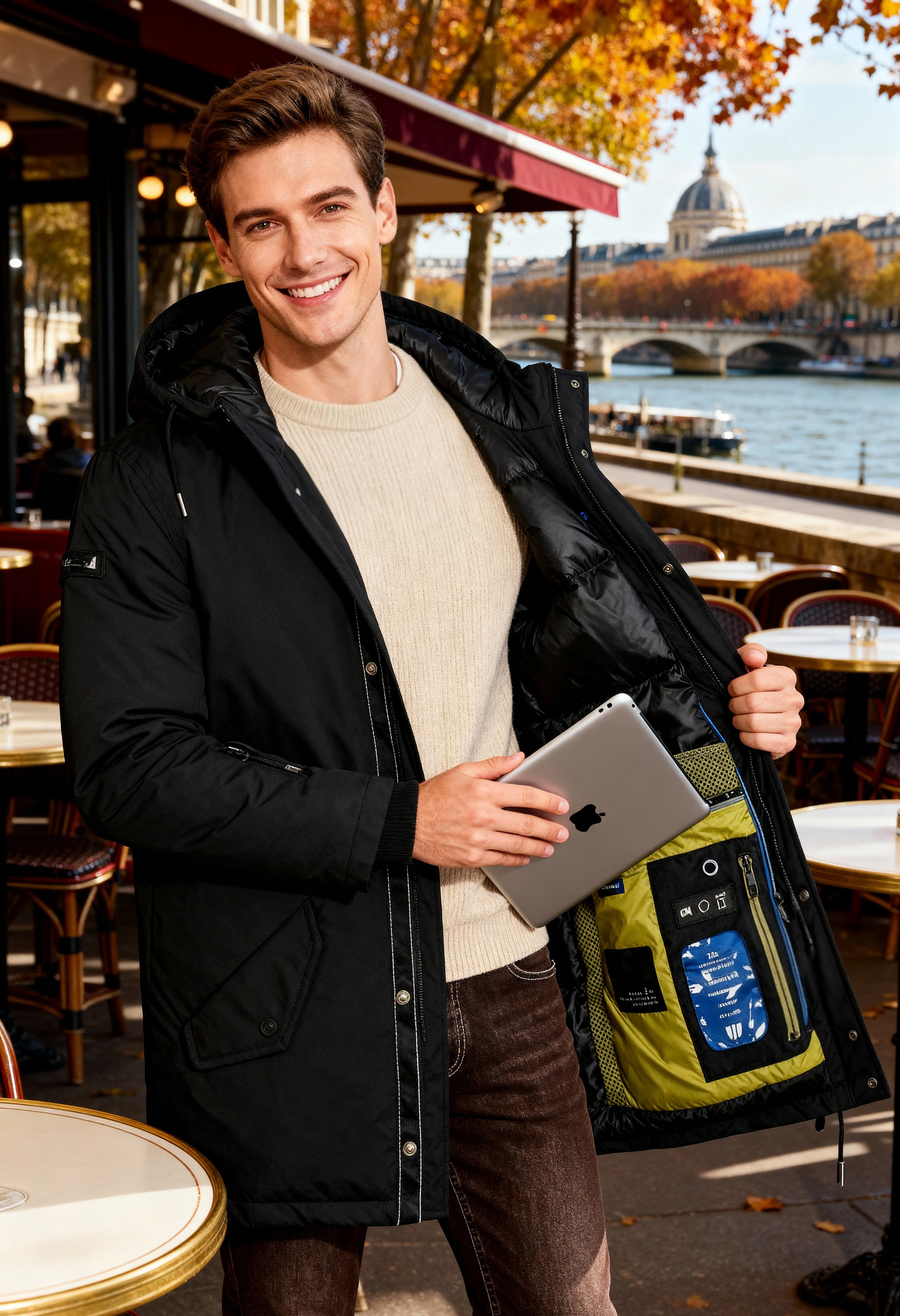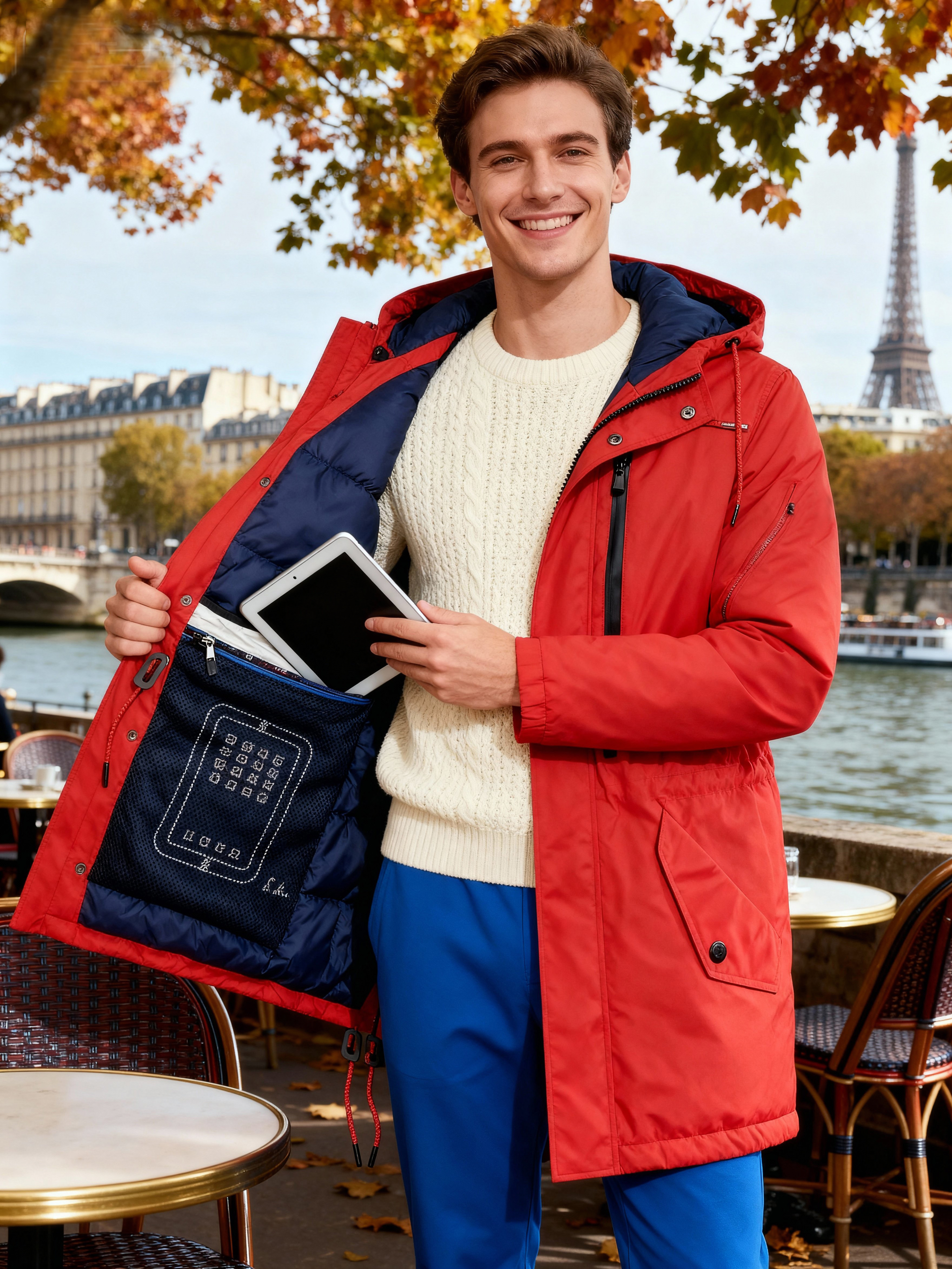 男女同款秋冬季16個口袋多功能羽絨派克外套