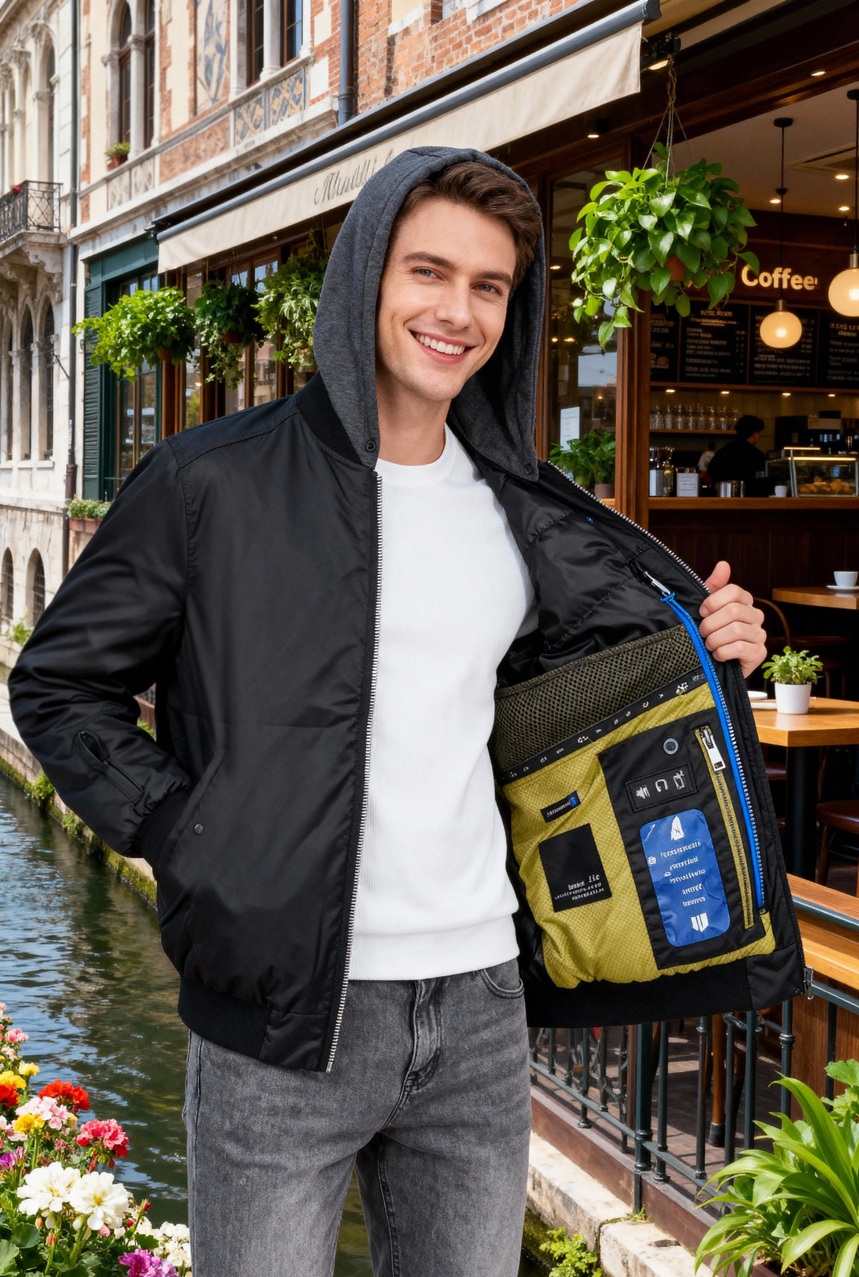 男女同款秋冬季20個口袋多功能飛行員羽絨夾克外套